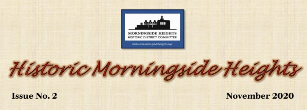 Hello, neighbors! Click here for the latest issue of our newsletter, which offers updates on our work to preserve McGiffert Hall, describes the proposed second phase of our Historic District for Morningside Heights, and features an interview with Professor Andrew Dolkart.